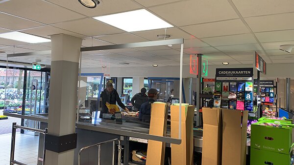 Perspex schermen voor tussen de kassarij om de consument te beschermen